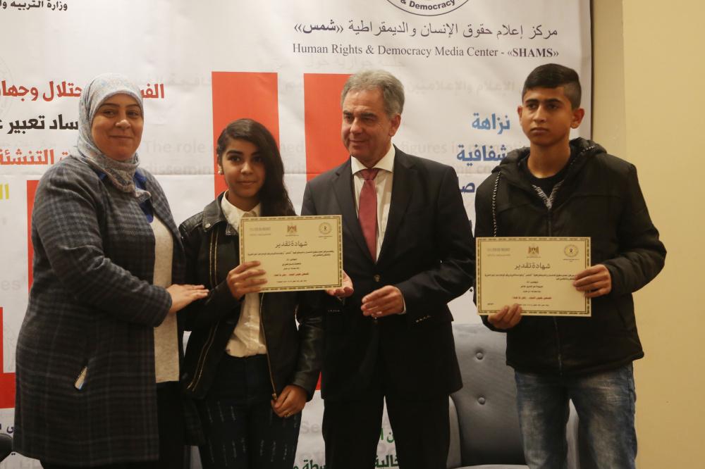 "شمس" و "فريدريش ناومان" تطلقان معرض رسم بعنوان "فلسطين بعيون الشباب..وطن بلا فساد" برام الله