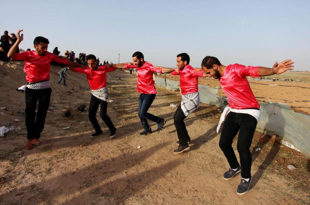 أدت فرقة دبكة عرضا فنيا على حدود غزة الشرقية ضمن فعاليات مسيرة العودة