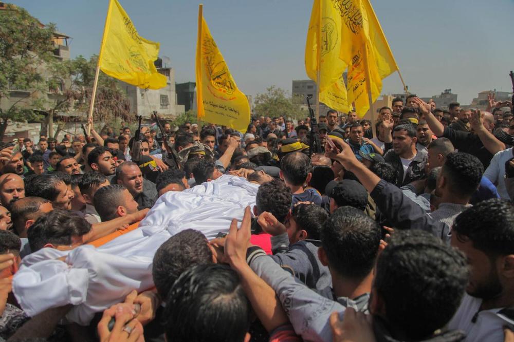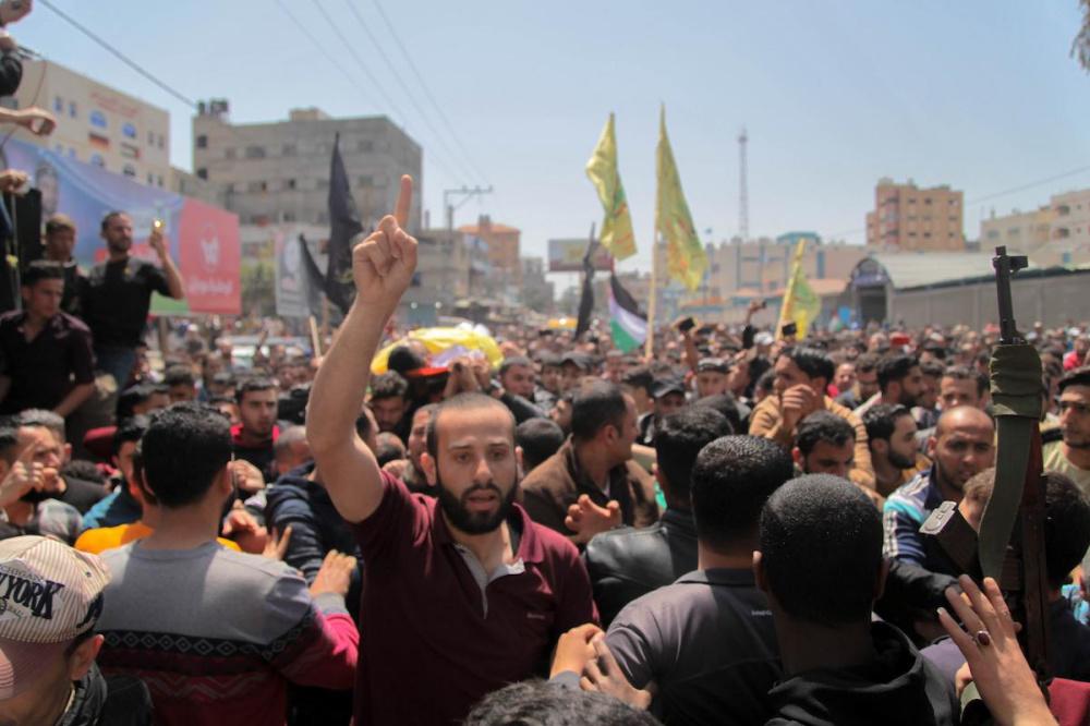 شيع الفلسطينيون جثمان الشهيد ثائر رابعة، والذي استشهد متأثرا بجراحه التي أصيب بها خلال مواجهات مع قوات الاحتلال الإسرائيلي اليوم في مخيم جباليا شمال قطاع غزة.