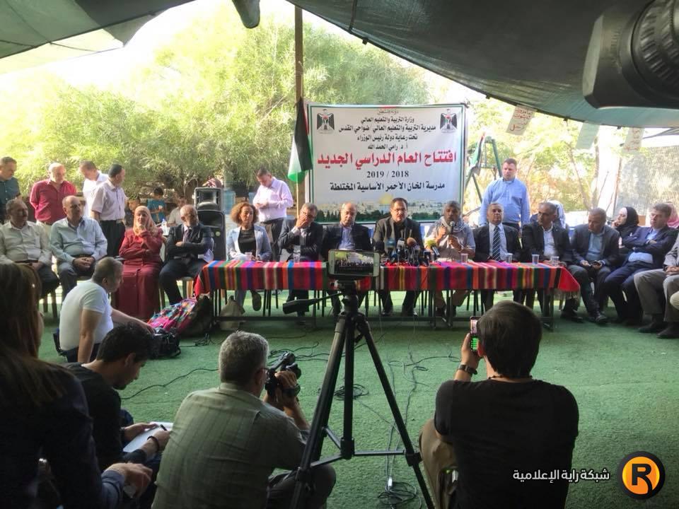 افتتحت وزارة التربية والتعليم العام الدراسي الجديد في قرية الخان الأحمر شرق القدس المحتلة، وذلك في قرار جاء بهدف تعزيز صمود أهلها.
