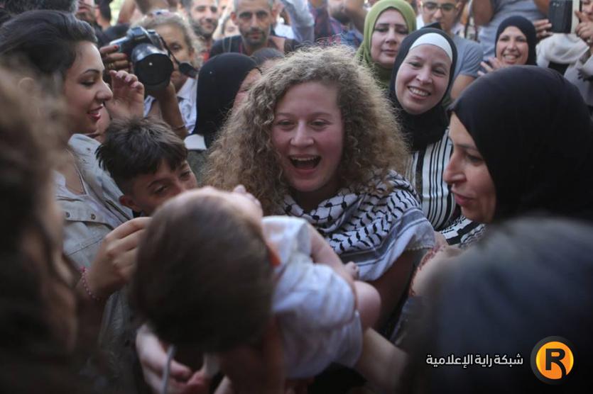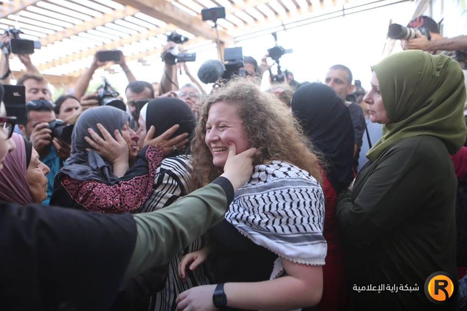 استقبال الطفلة عهد التميمي ووالدتها في منزلهما ببلدة النبي صالح