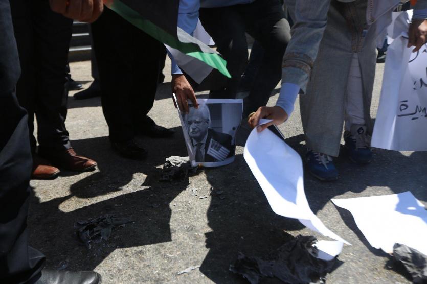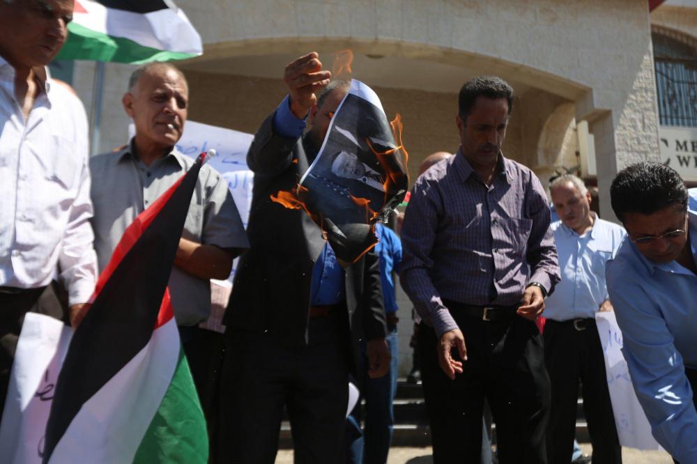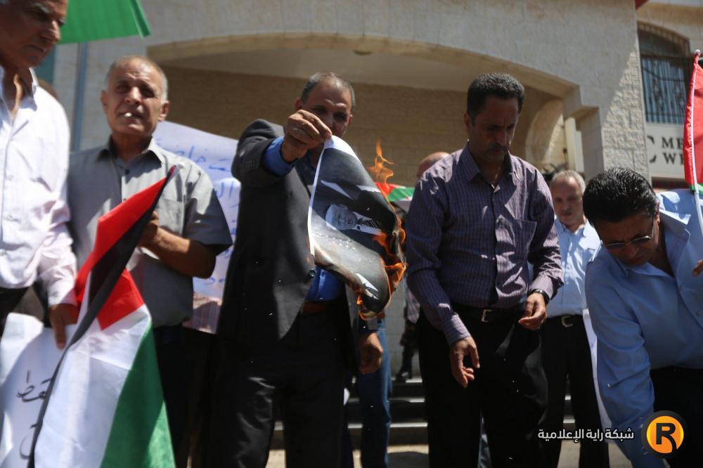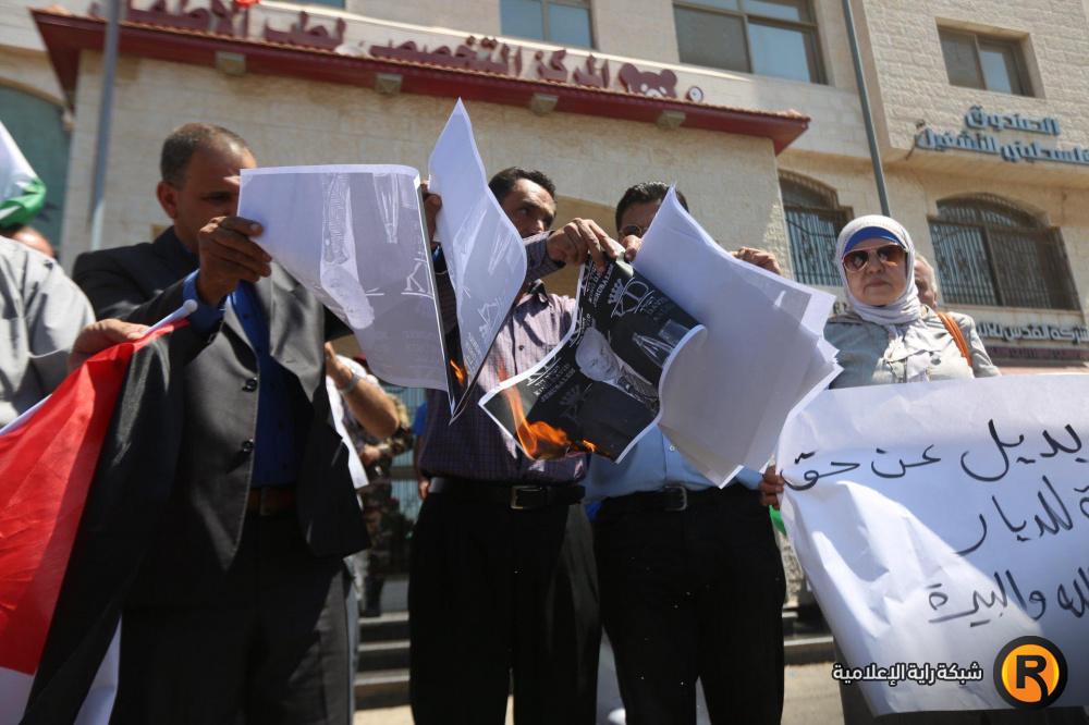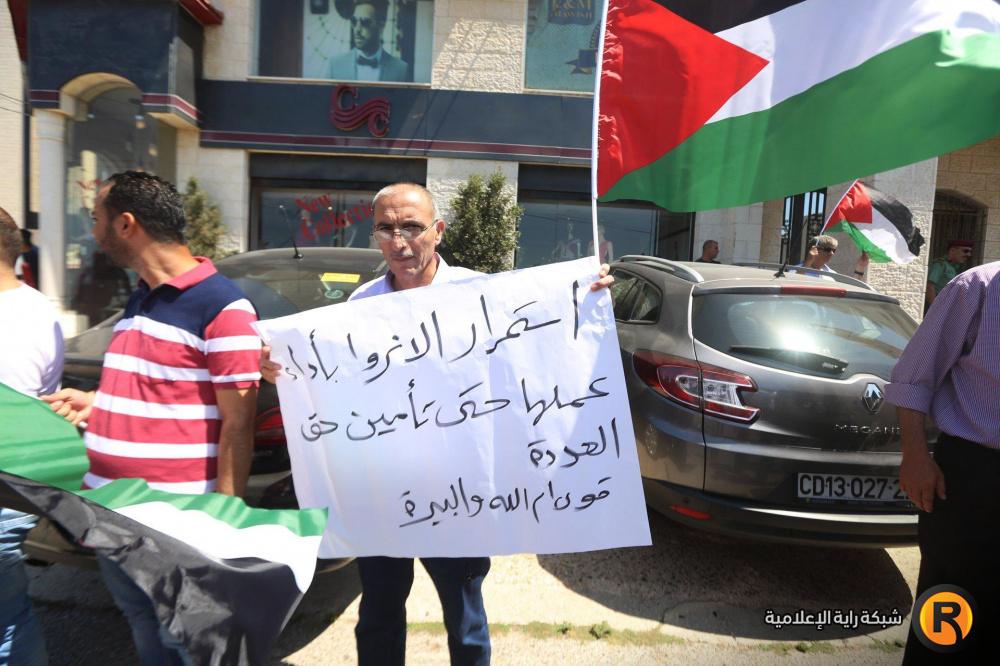 نظم مواطنون وقفة احتجاجية في رام الله ضد اجراءات الولايات المتحدة التي تستهدف تصفية وكالة الاونروا وقضية اللاجئين الفلسطينين.