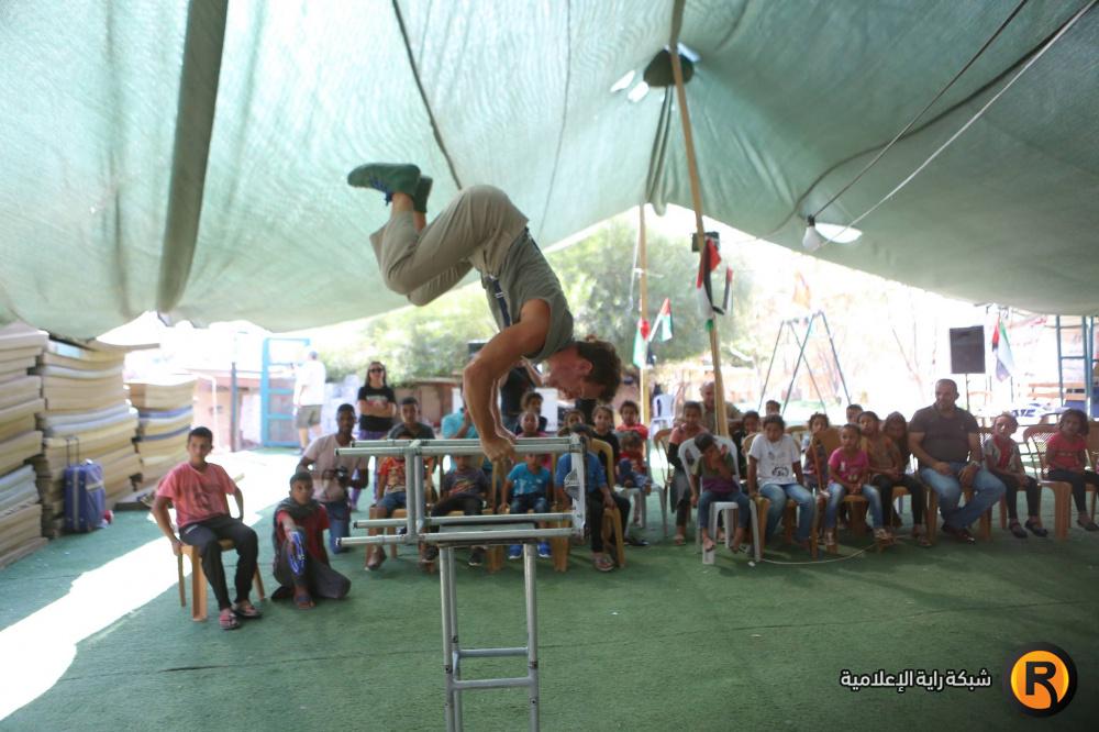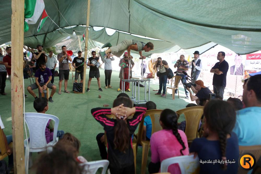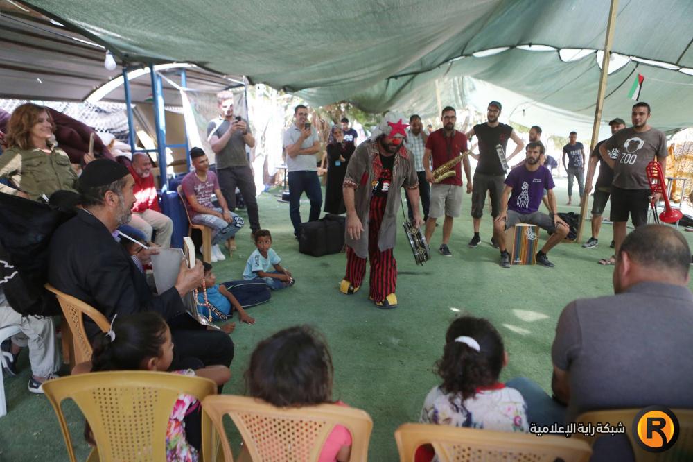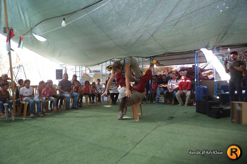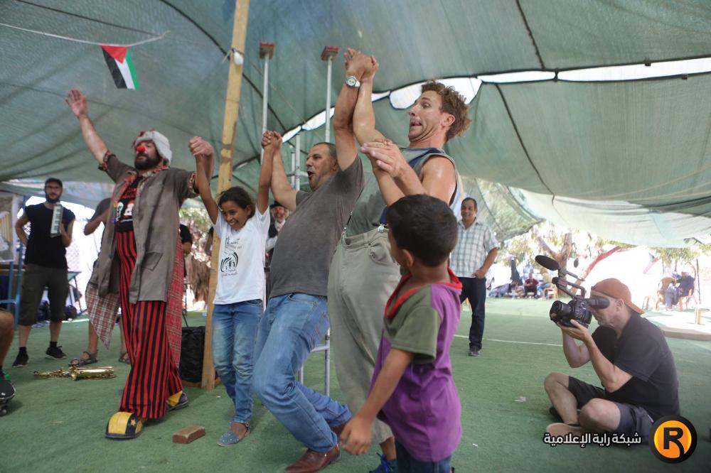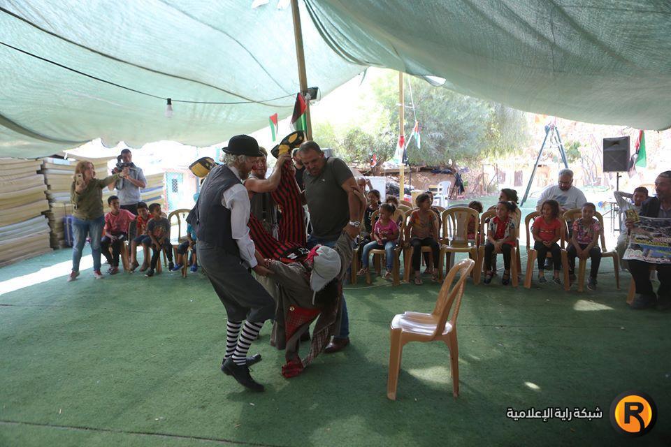 فرقة إسبانية تقدم عرضا للاطفال في قرية الخان الاحمر