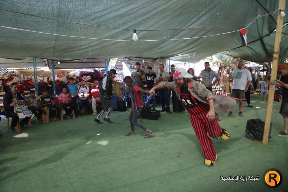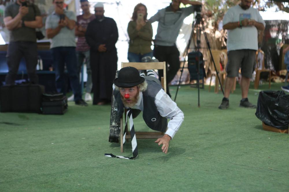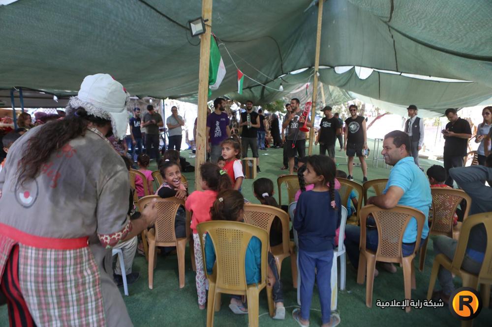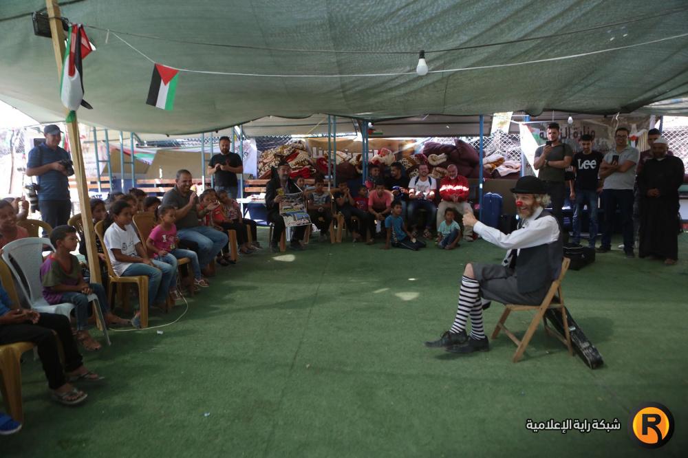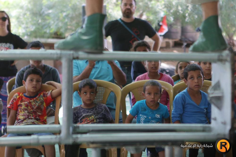 فرقة إسبانية تقدم عرضا للاطفال في قرية الخان الاحمر