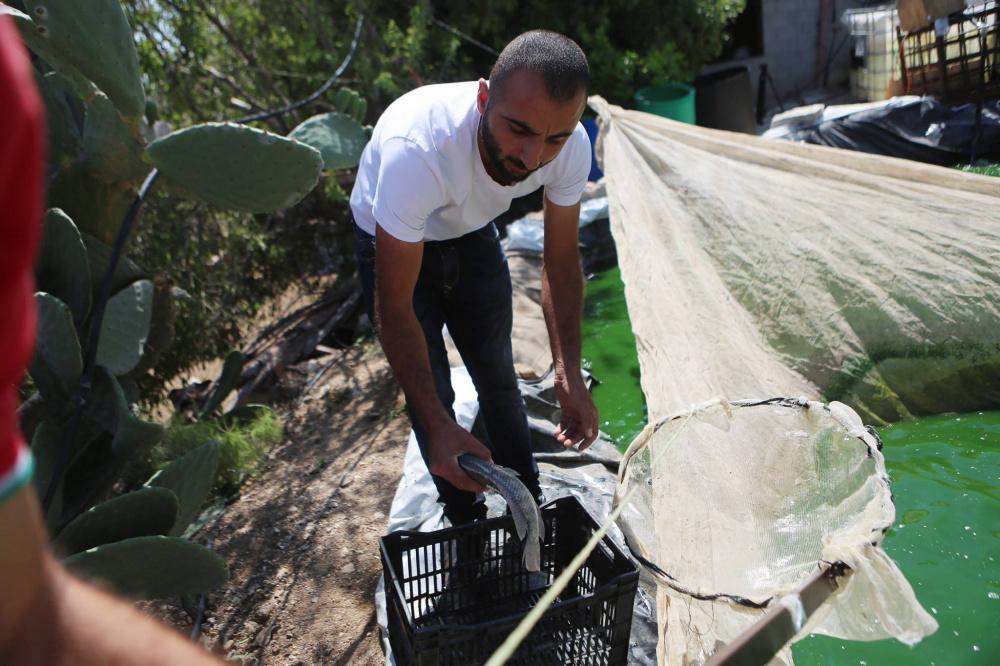 المهندس الزراعي جعفر حمد قرر أن يربي الاسماك في منزله في بلدة تل قرب نابلس.