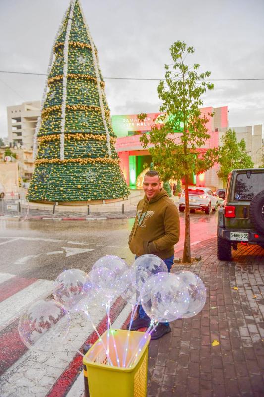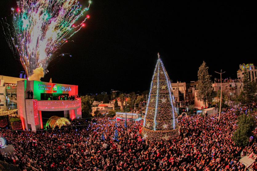 أضاءت بلدية رام الله مساء الاثنين، شجرة الميلاد في في المدينة، وسط أجواء من الفرحة، و بحضور رسمي وشعبي كبير. تصوير: عرين الريناوي