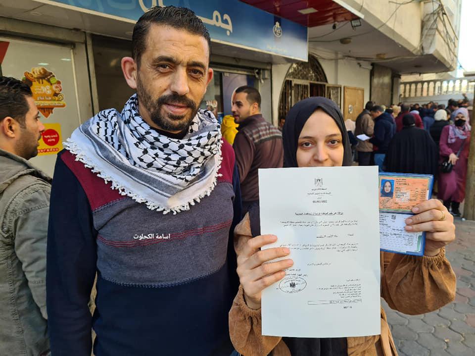 فرحة المواطنين باستلامهم أوراق لم الشمل من مقر هيئة الشؤون المدنية في غزة بعد سنوات طويلة من الانتظار.