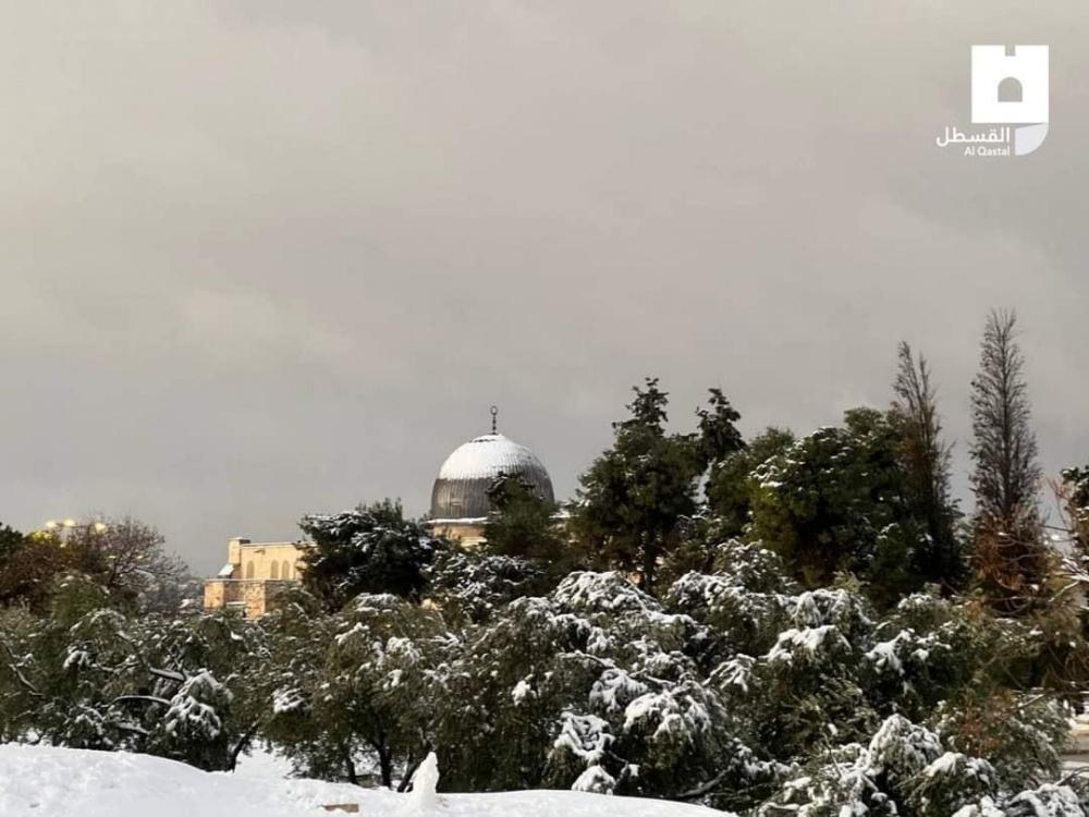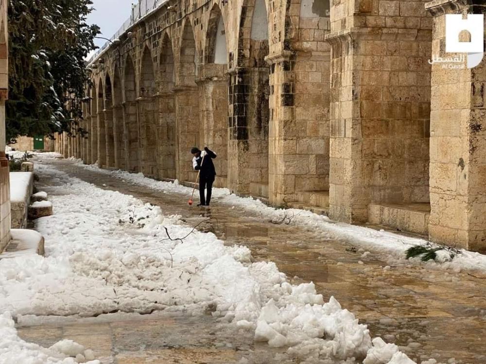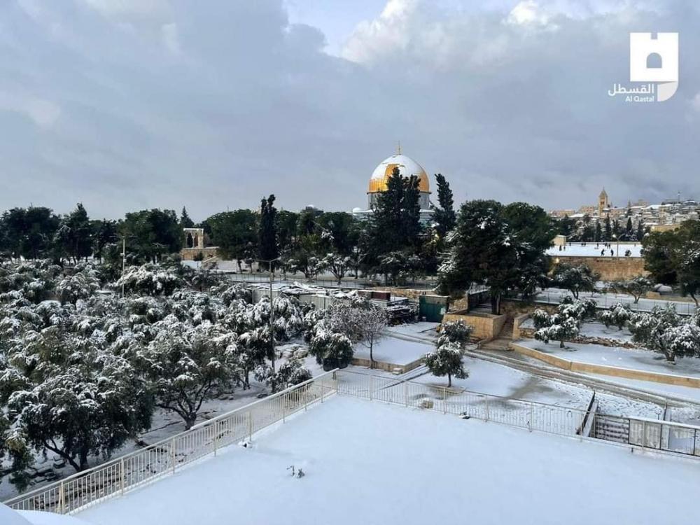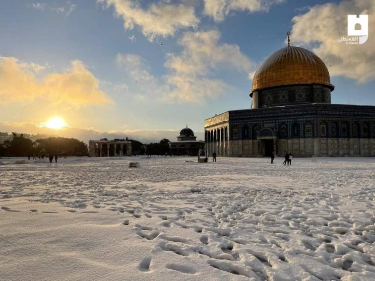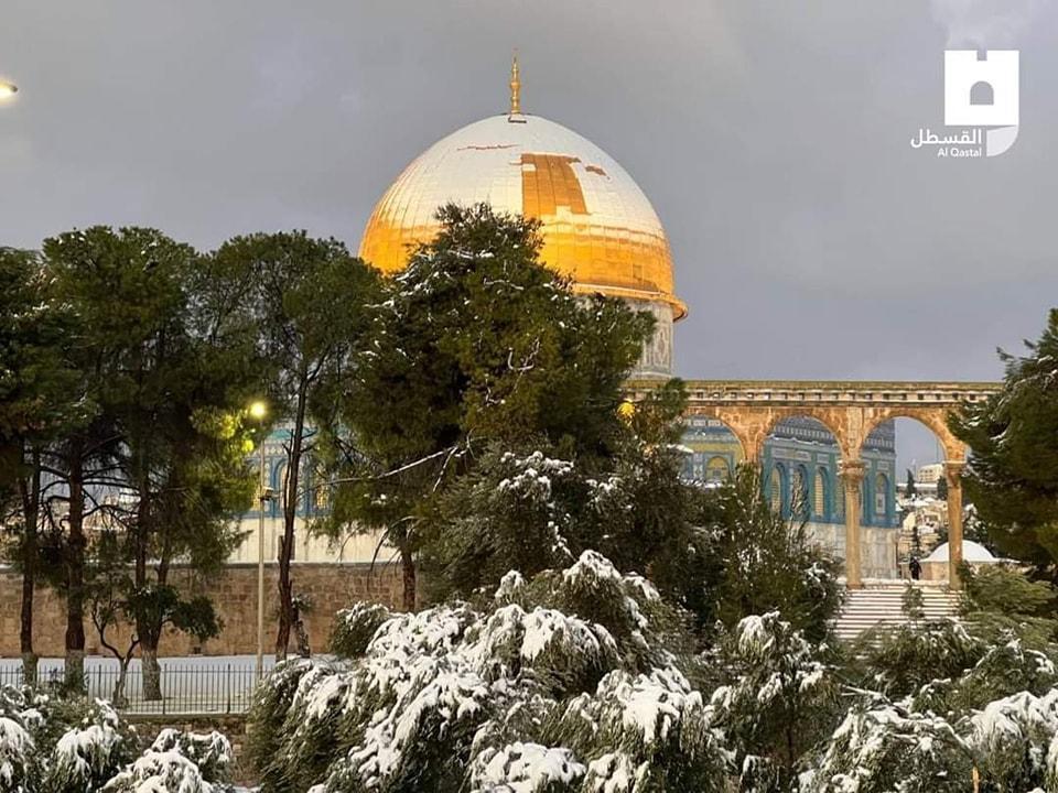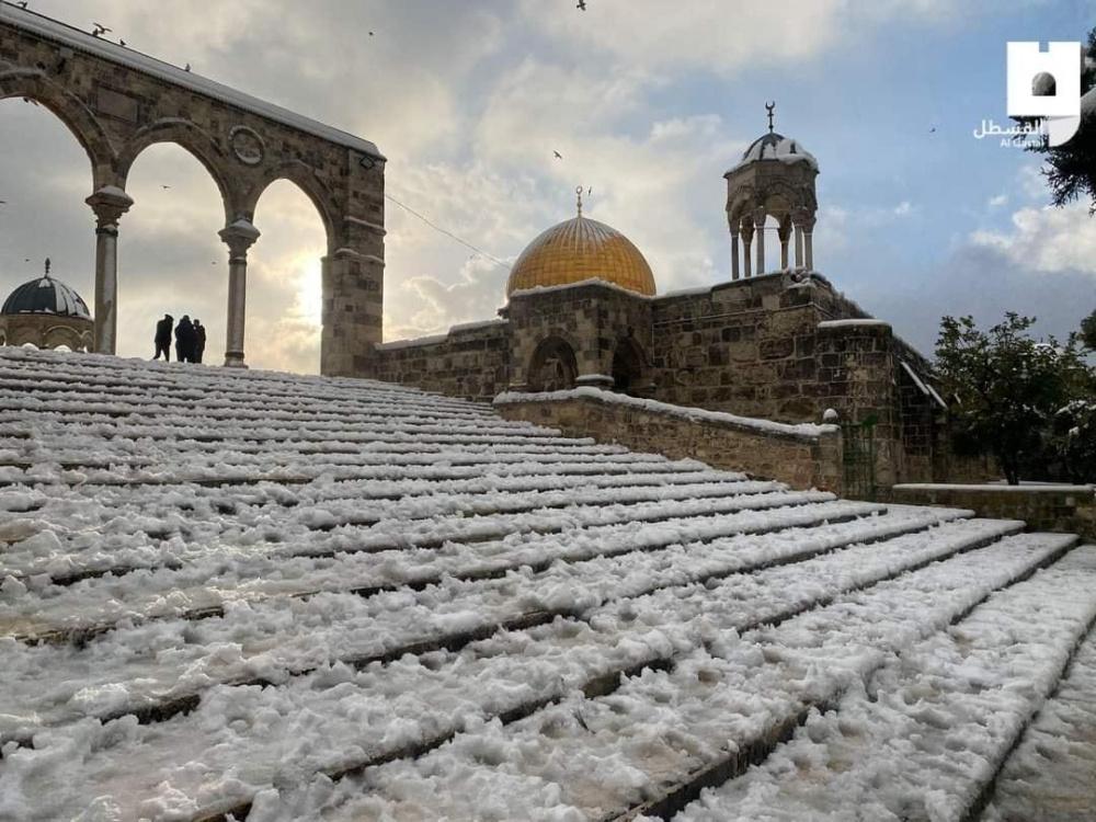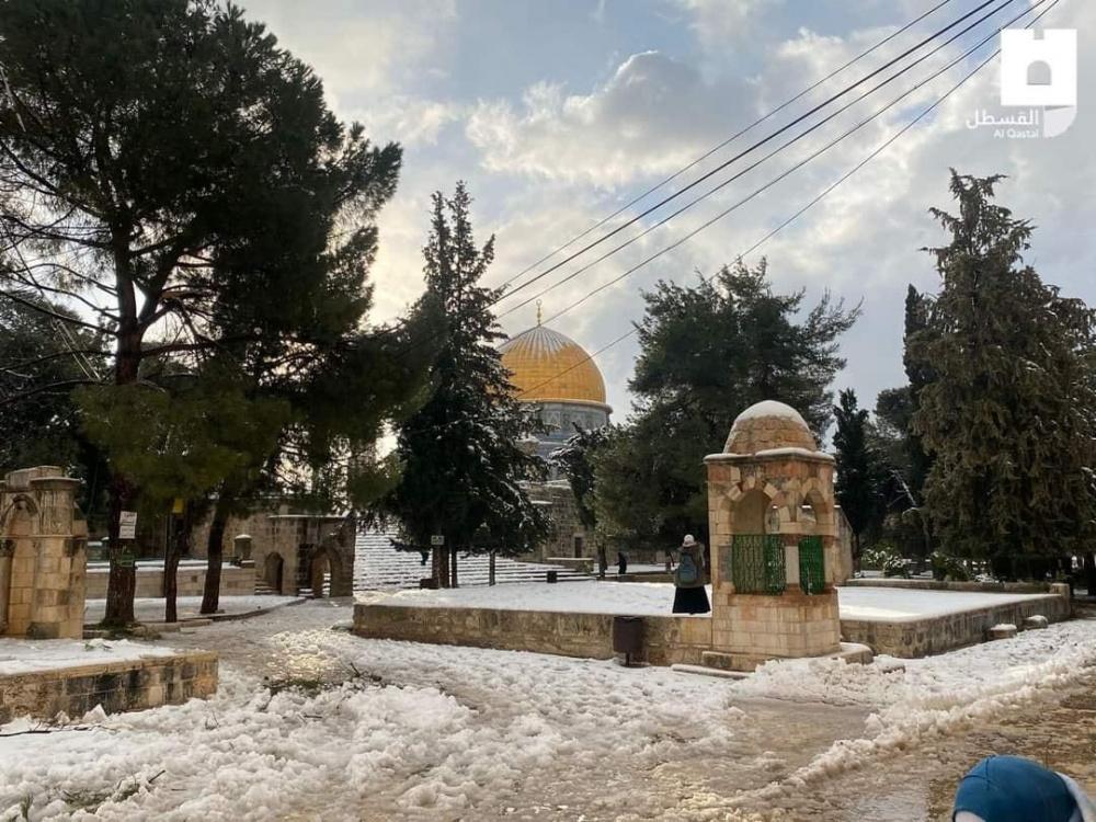 صور لتغطية الثلوج لساحات المسجد الأقصى المبارك صباح اليوم الخميس