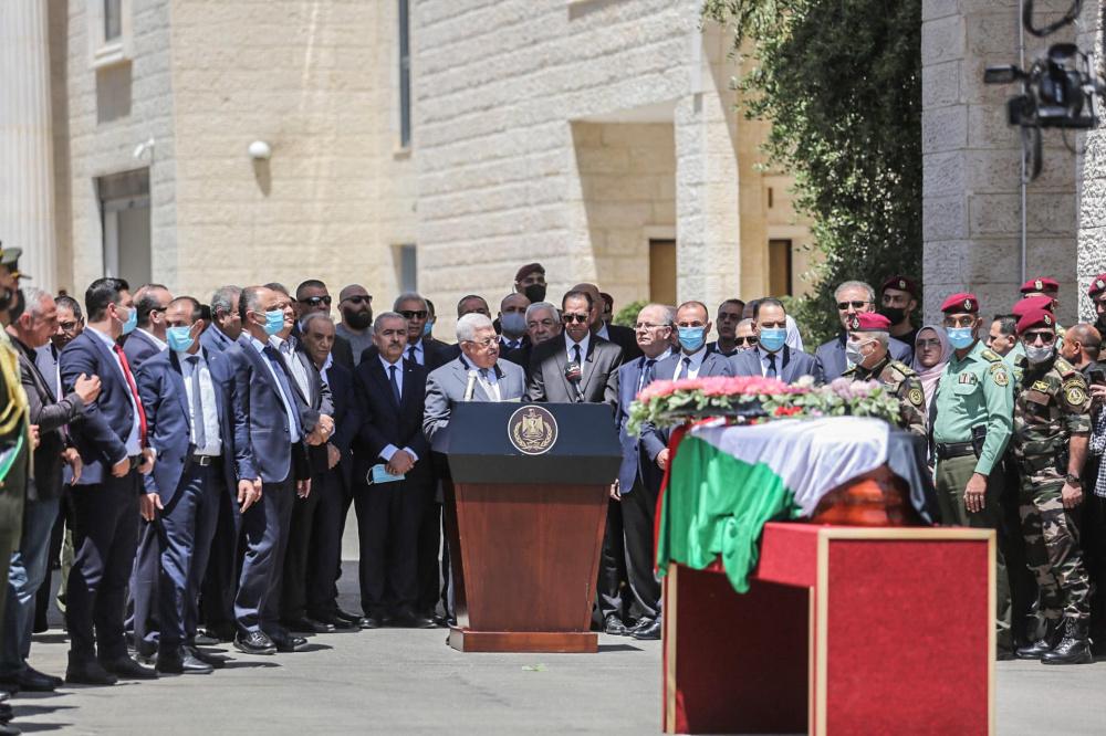 ووضع الرئيس إكليلا من الزهور على جثمان الشهيدة أبو عاقلة، والقى نظرة الوداع الأخيرة على جثمانها، الذي لف بالعلم الفلسطيني، لدى وصوله إلى مقر الرئاسة، قبل أن ينقل إلى المستشفى الفرنسي في مدينة القدس، حيث سيوارى الثرى هناك يوم غد الجمعة.