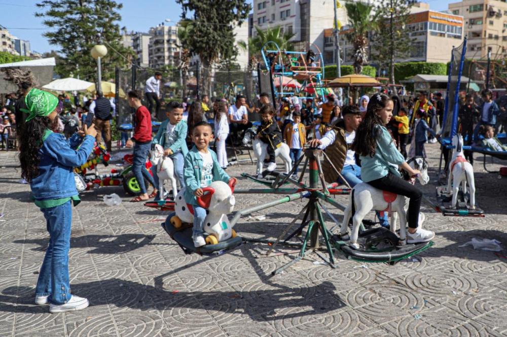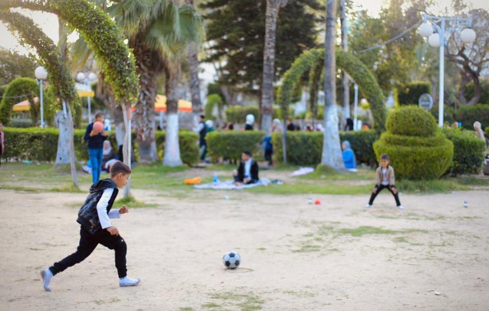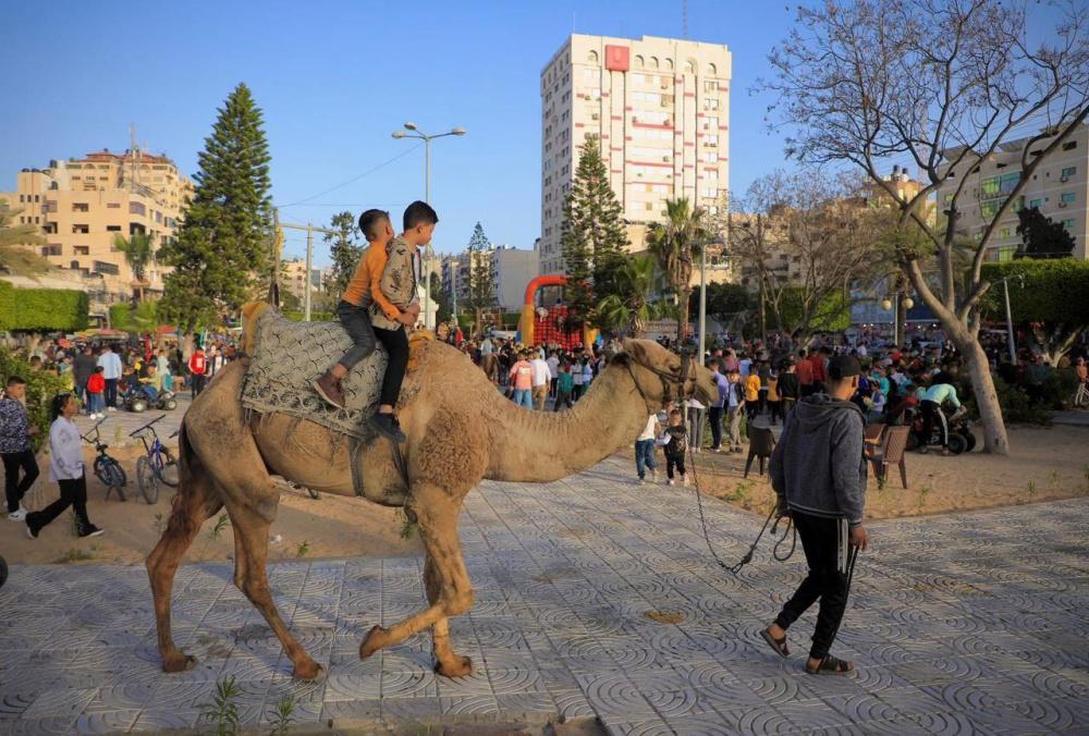 يحتفل الأطفال في قطاع غزة بعيد الفطر المبارك عقب شهر رمضان، حيث يصحبهم الأهالي إلى المنتزهات والأماكن العامة؛ من أجل الترفيه عن أنفسهم، في ظل الحصار الإسرائيلي المفروض على القطاع منذ أكثر من 16 عاما.