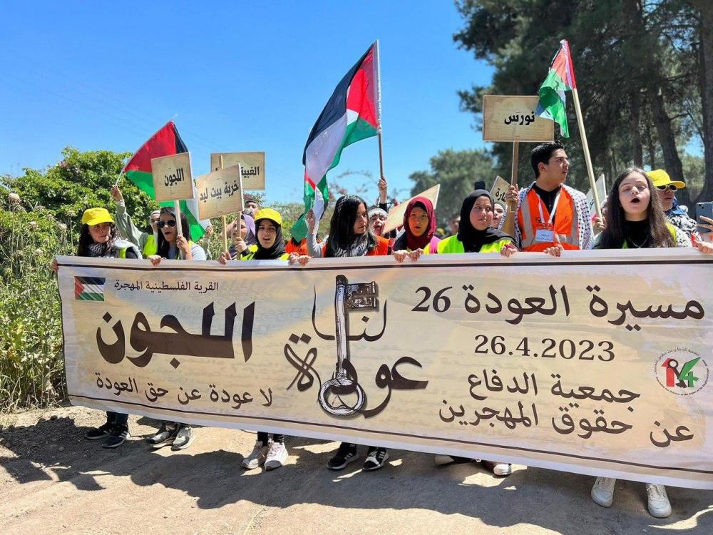 وانطلقت المسيرة بالقرب من شارع وادي عارة الرئيس، وصولا إلى عمق قرية اللجون المهجرة.