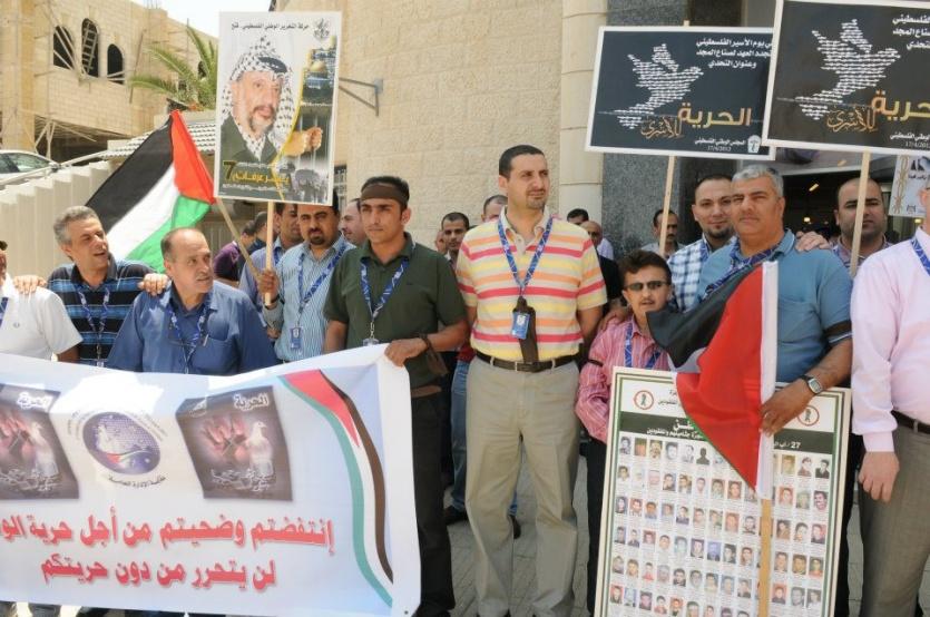 وقفة تضامن لموظفي بالتل أمام مبنى الادارة العامة رافعين شعار "معكم للحرية" ضمن الحملة التي دعت اليها راية اف ام عبر برنامج مع الناس للمؤسسات الوطنية بالاعتصام امام مقراتها تضامناً مع أبطال الحرية المضربين عن الطعام.