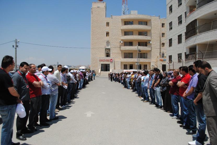 بعض الصور لمشاركة موظفي شركة الوطنية موبايل في التضامن مع أسرى الحرية في اضرابهم عن الطعام بعد الدعوة التي أطلقها برنامج مع الناس للمؤسسات الوطنية بالاعتصام امام مقراتها.
