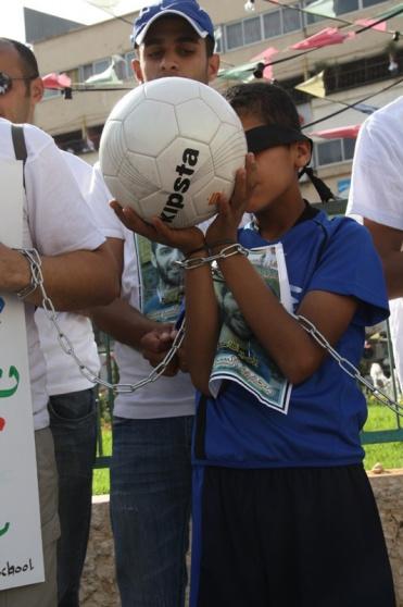 تضامن 60 طفل في اعتصام رياضي تضامني مع الاسير محمود السرسك المضرب لليوم 92 في نابلس اليوم