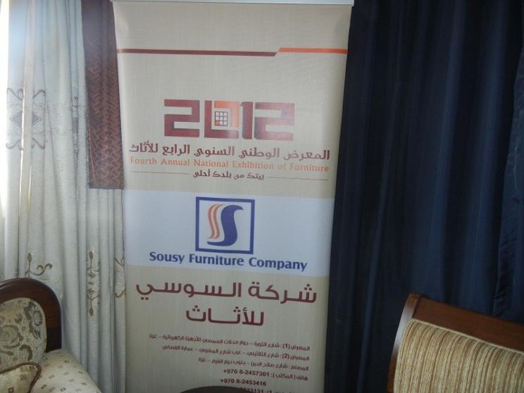للمرة الأولى تشارك 6 شركات مصنعة للأثاث من قطاع غزة في معرض الصناعات الفلسطينية الذي ينظمه اتحاد الغرف التجارية الصناعية الفلسطينية بالتعاون مع غرفة تجارة الأردن وغرفة صناعة الأردن وهيئة تشجيع الاستثمار الأردنية والذي يقام في مدينة عمان بمدينة الحسين للشباب خلال الفترة من 4/7/2012 حتى 7/7/2012.