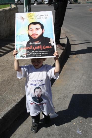 وقفة تضامنية مع الأسير حسن الصفدي المضرب عن الطعام بمشاركة الأسير المحرر جعفر عز الدين والاسير المحرر حسام خضر في مدينة نابلس