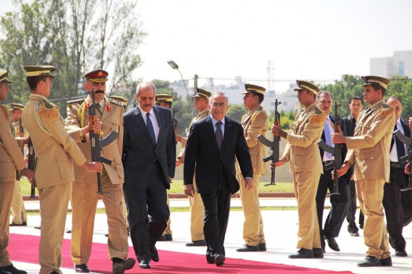 استقبال رئيس الوزراء الأردني فايز الطراونة في مقر المقاطعة في رام الله
