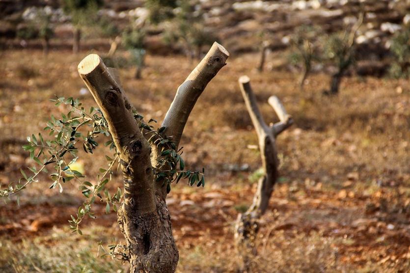 المستوطنون يقطعون قرابة 140 شجرة زيتون في قرية المغير