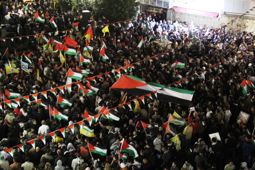 الآلاف من الفلسطينيين يحتشدون لمتابعة اعلان فلسطين دولة بصفة مراقب في الامم المتحدة