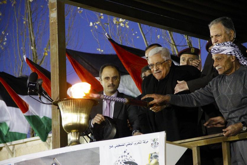 الرئيس محمود عباس يضيء شعلة الانطلاقة 48 لحركة فتح في مقر المقاطعة