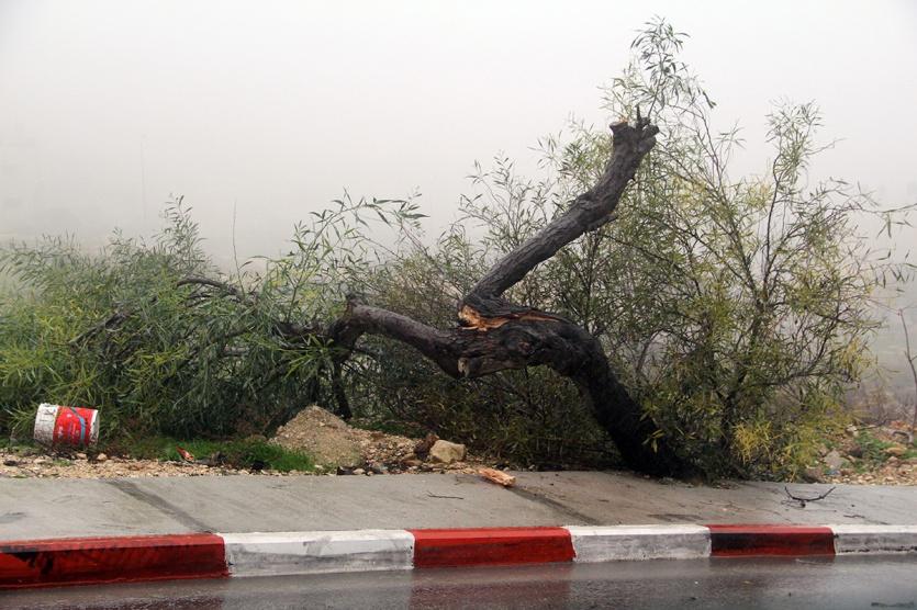 اضرار العاصفة والمنخفض الحالي في شوارع رام الله هذا الصباح