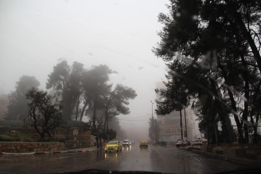 اجواء المنخفض الجوي في مدينة رام الله هذا اليوم