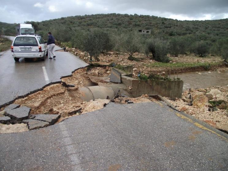 تدمير مدخل كفر قدوم الفرعي بفعل جرف المياه