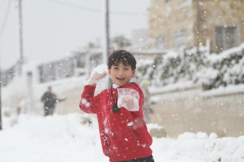 الثلوج تنشر الفرحة في مدينة القدس