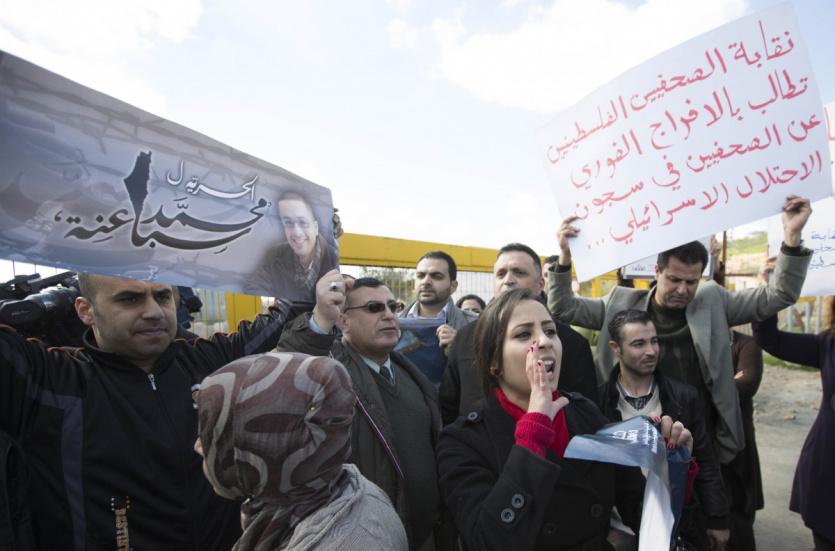 اعتصام الصحافيين امام سجن عوفر ضد الإعتداءات المتكررة عليهم وتضامناً مع كافة الزملاء المعتقلين في سجون الإحتلال ومنهم الزميلين محمد سباعنه وعامر أبو عرفة