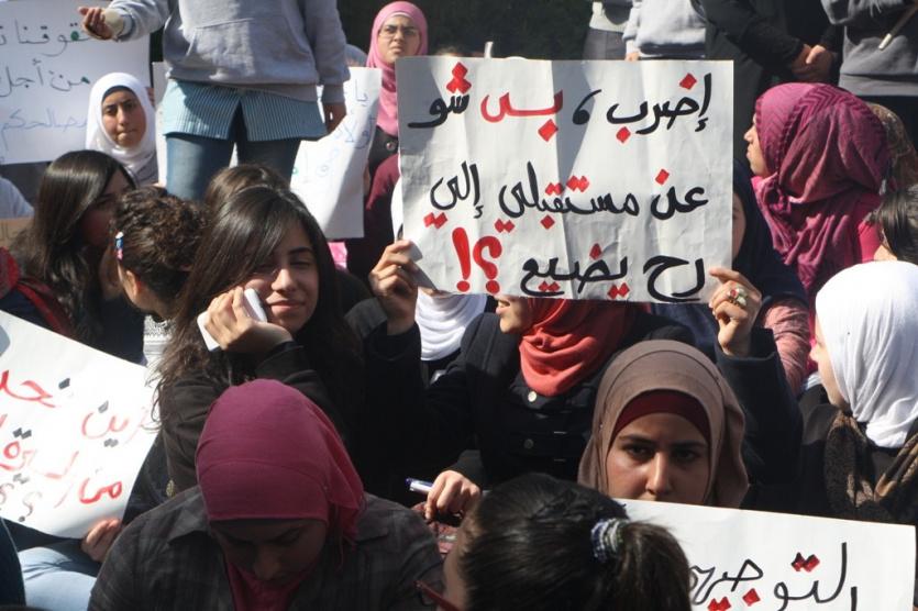 اعتصام طلبة التوجيهي أمام مبنى وزارة التربية والتعليم اليوم في مدينة رام الله مطالبين الوزارة بحذف مواد من المناهج بما يتوافق مع الاضرابات ...