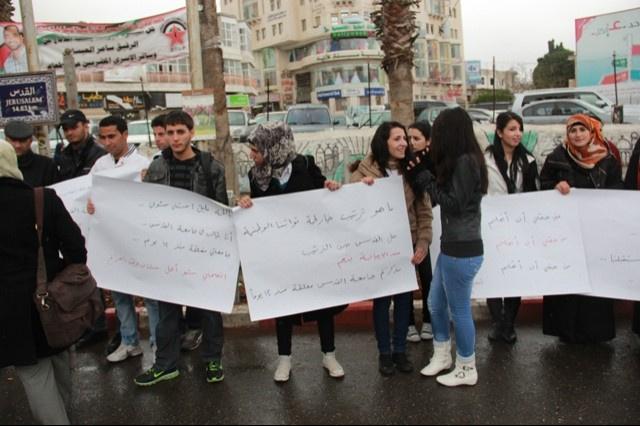 طلبة جامعة القدس (ابو ديس) يحتجون على سياسة اغلاق الجامعة