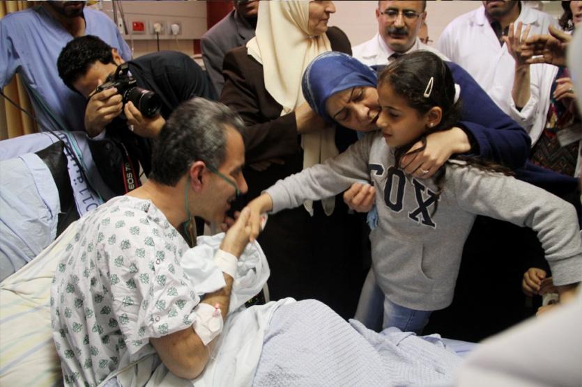 وصول الأسير المريض محمد التاج الى مجمع فلسطين الطبي بعد الافراج عنه هذا اليوم من سجون الاحتلال