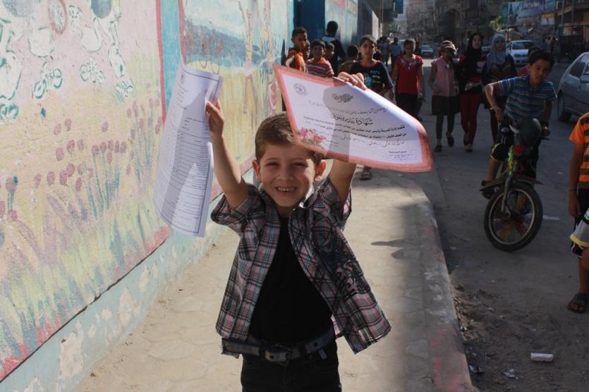 فرحة اطفال غزة خلال تسلم الشهادات