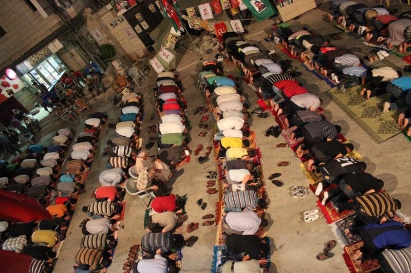 اهالي بيت ريما يقيمون صلاة التراويح أمام خيم الاعتصام تضامناً مع الاسرى المضربين عن الطعام