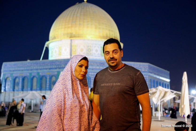 بالصور: الفنانة السورية "أصالة نصري" وزوجها المخرج طارق العريان في المسجد الاقصى المبارك
