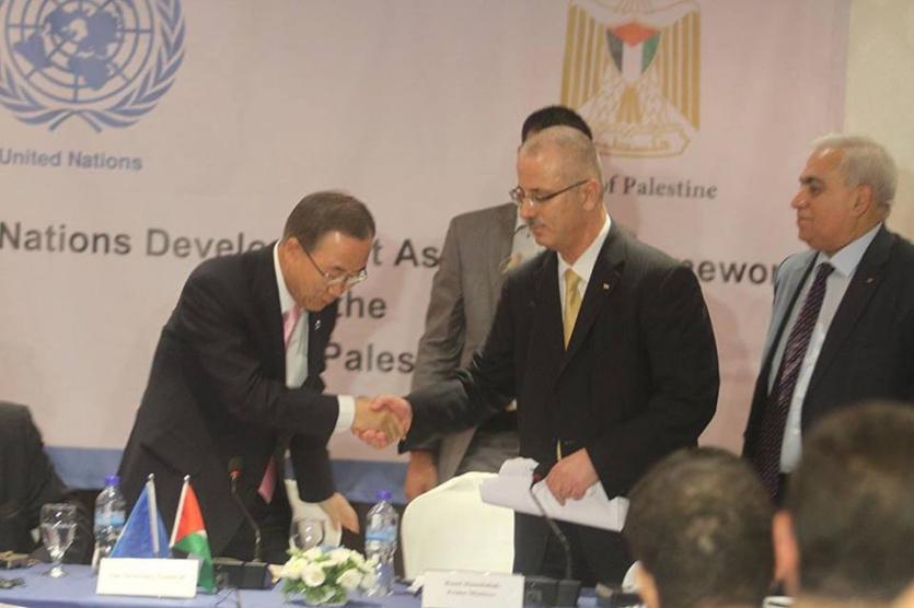 بان كي مون أمين عام الأمم المتحدة لدى وصوله رام الله ولقاء رئيس الوزراء رامي الحمد الله