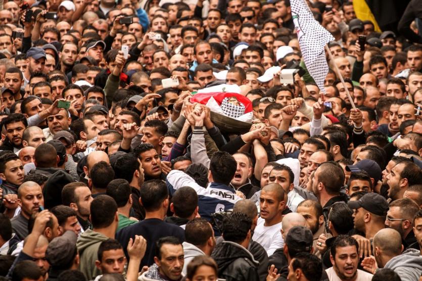 آلاف المواطنين يُشيعوت جثمان الشهيد محمود عواد في مخيم قلنديا