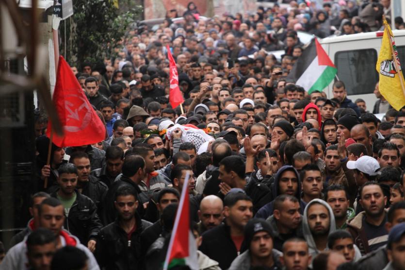 تشييع جثمان الشهيد وجيه الرمحي (15 عاما) في مخيم الجلزون