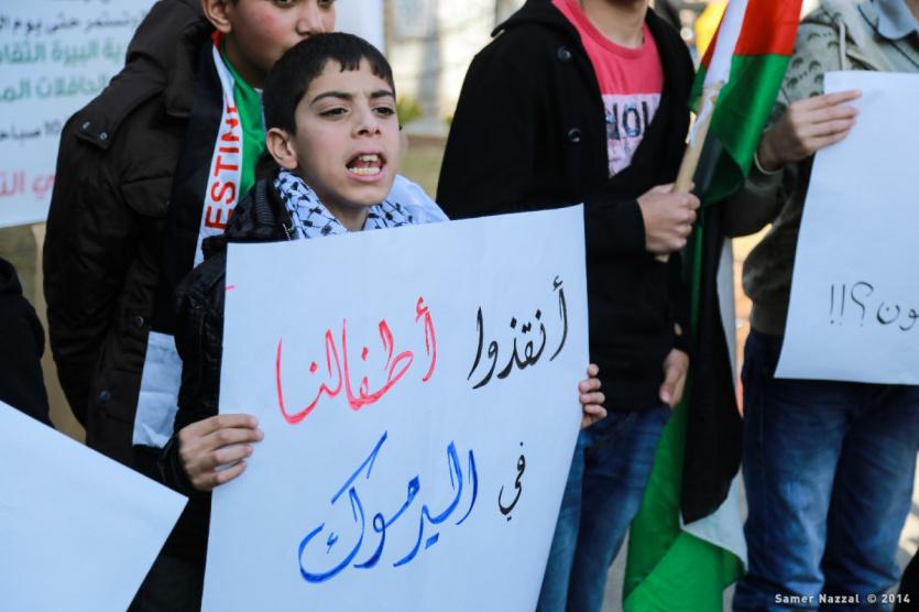 أطفال مخيم الأمعري ينفذون وقفة تضامنية مع مخيم اليرموك