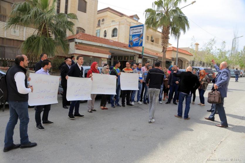 نظم اليوم الاثنين، عشرات الموظفين والموظفات العاملين بنظام العقود المؤقتة، في هيئة الاذاعة والتلفزيون اعتصاما امام مقر وزارة المالية في رام الله للاحتجاج على عدم صرف رواتبهم الشهرية منذ اشهر.