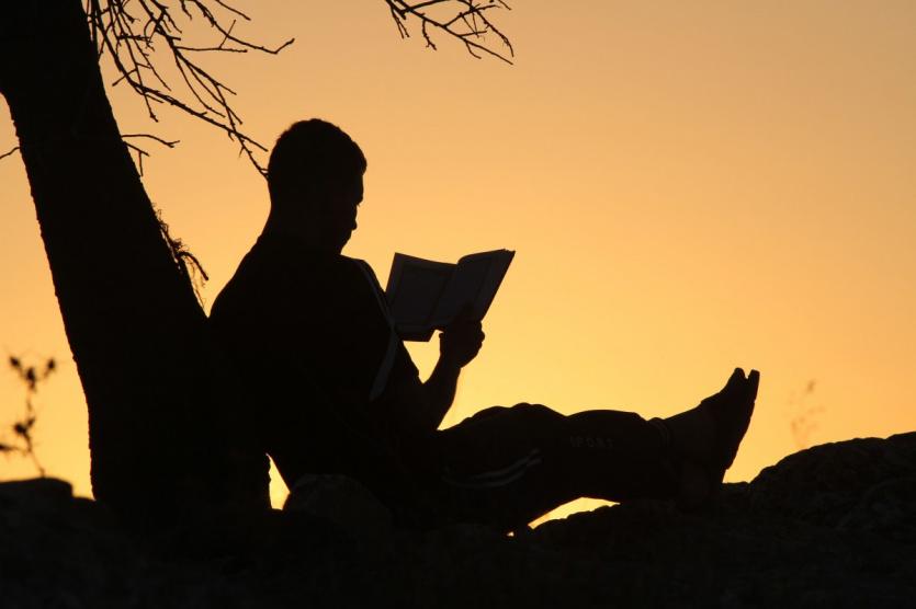 رجل يقرأ القرآن أثناء غروب الشمس في مدينة رام الله