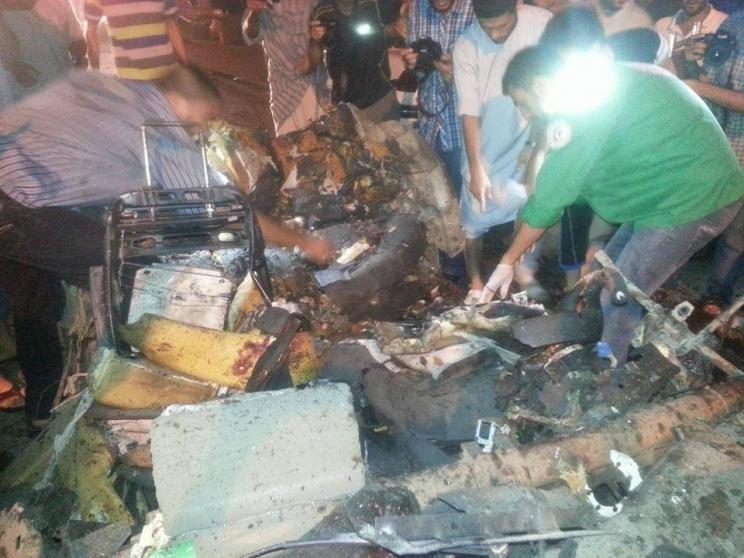 صور السيارة التي نسفتها طائرات الاحتلال ما ادى الى استشهاد الزميل الصحفي حامد شهاب..