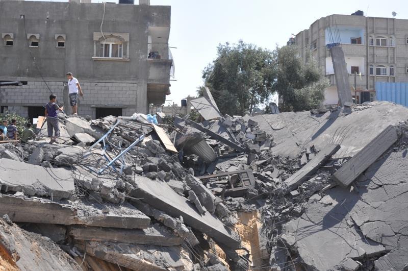صور من استهداف الطيران الحربي الاسرائيلي لمنزل عائلة فحجان شرق محافظة رفح جنوب قطاع غزة صباح الخميس.