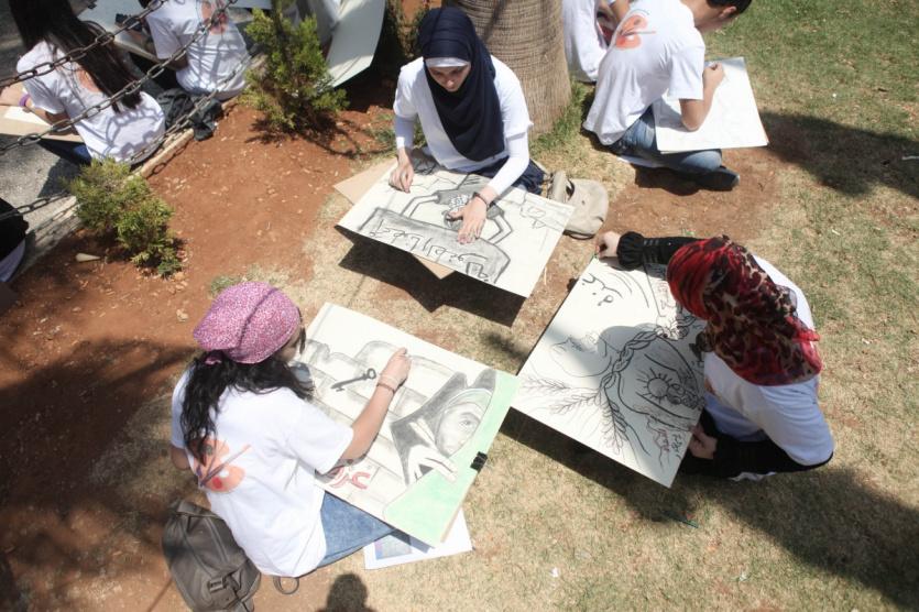 نظم اليوم مركز عبد الهادي يعيش للفنون الجملية حملة بعنوان " اليوم التضامني مع اهلنا في غزة" وسط مدينة رام الله وذلك من خلال رسومات تضامنية مع اهالي غزة