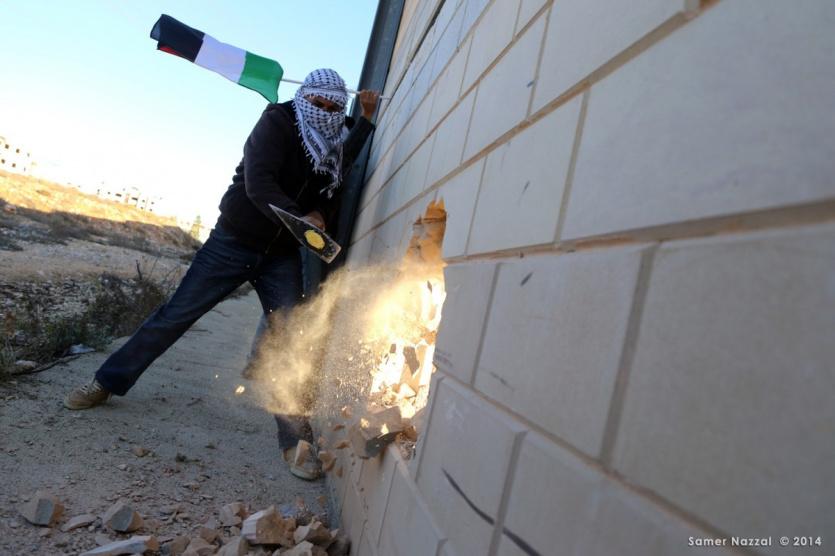 نشطاء المقاومة الشعبية يهدمون مقطعا من جدار الفصل العنصري قرب بيرنبالا