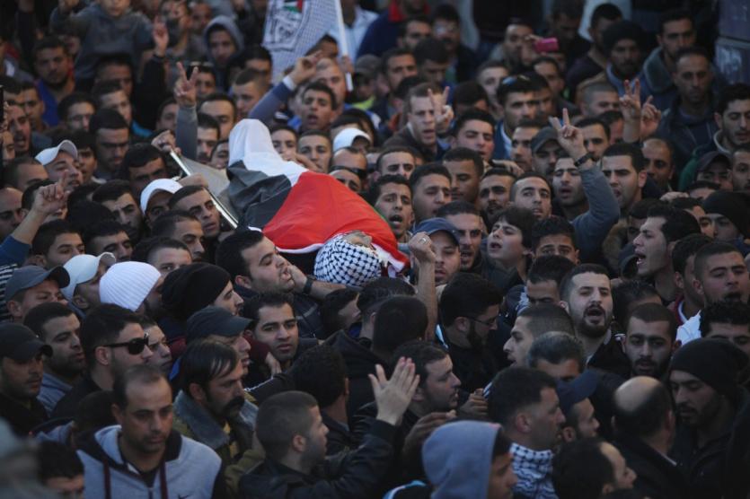 تشييع جثمان الشهيد محمود عبد الله عدوان 21 سنة في مخيم قلنديا