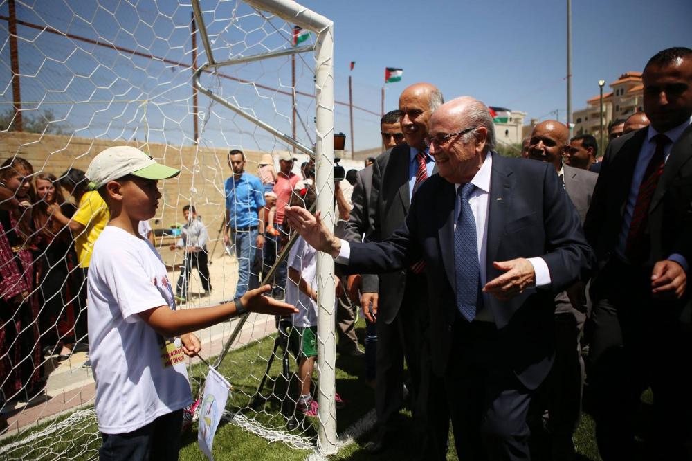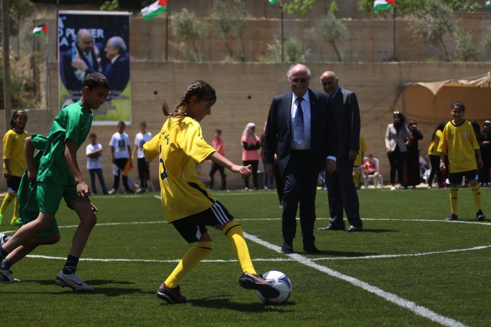 رئيس الاتحاد الدولي لكرة القدم يفتتح ملعب كرة قدم في دوار القرع قرب رام الله