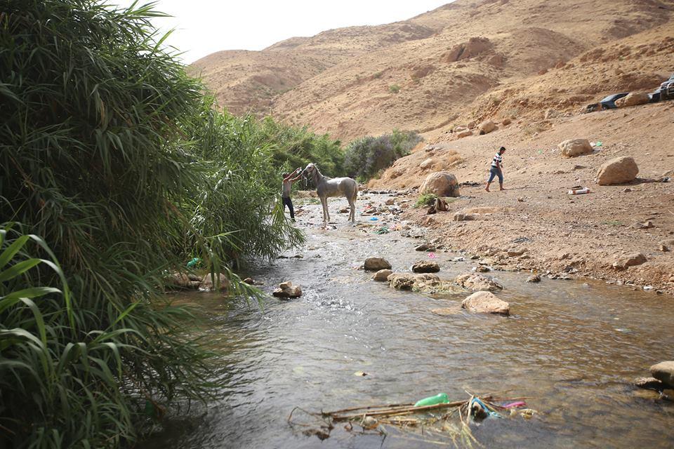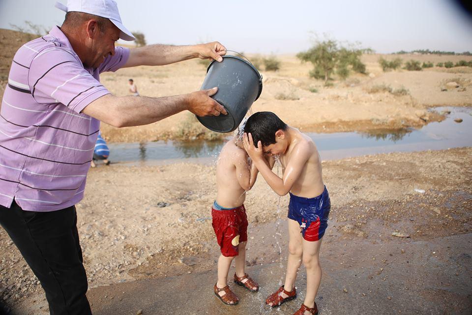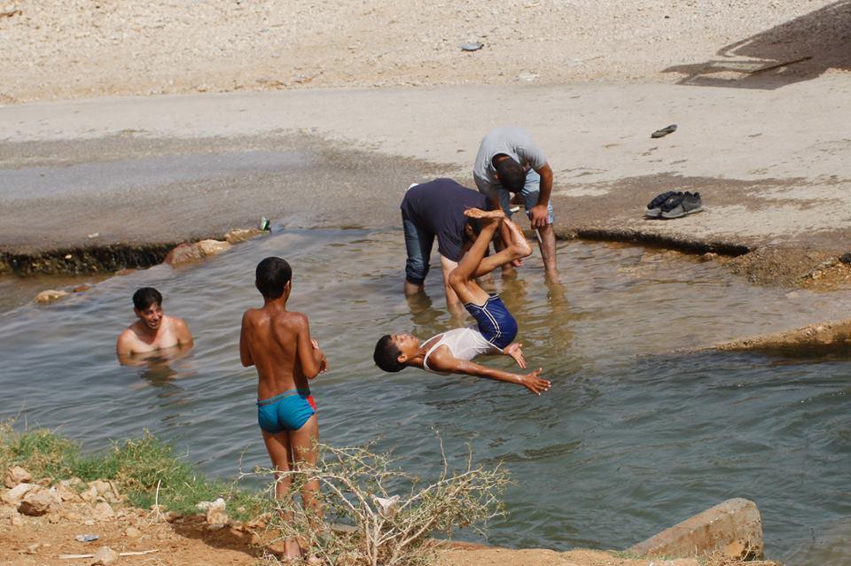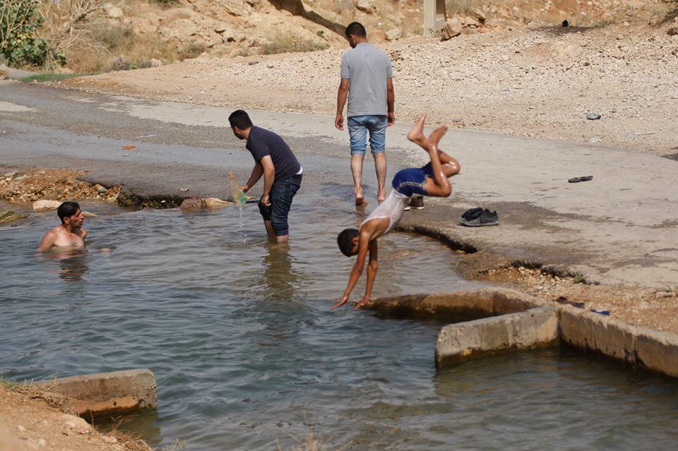 الاجواء الحارة تدفع المواطنين للاستجمام في عين العوجا