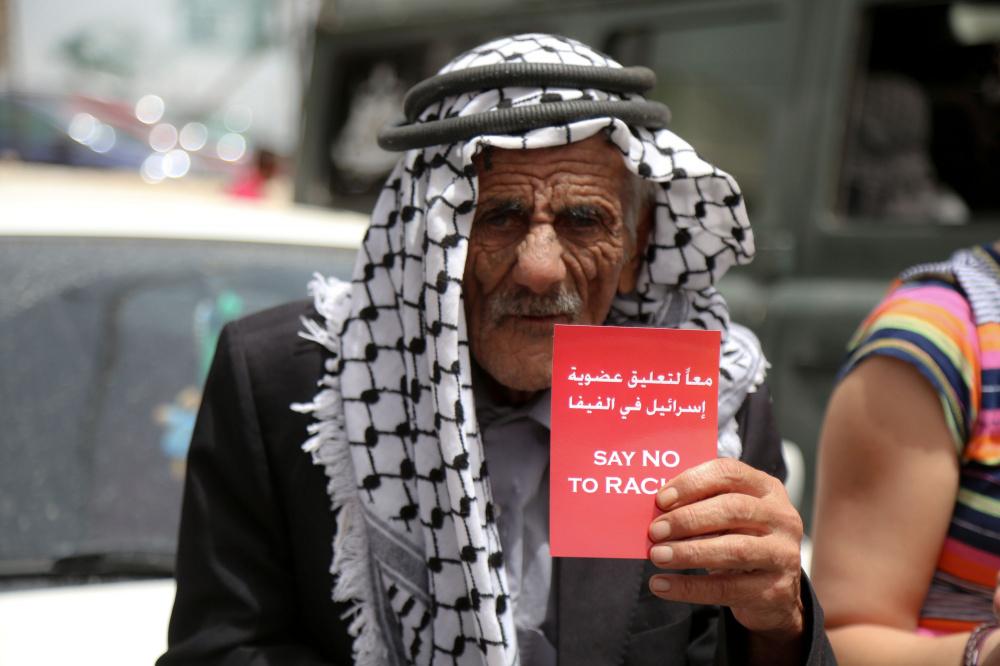 وقفة تضامنية لدعم التوجه لطرد اسرائيل من الفيفا وسط رام الله