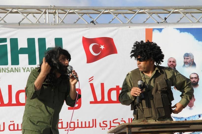 عدسة: سامح ابو دية - نظمت هيئة الاغاثة الانسانية والحريات بغزة ( IHH )، حفل في ميناء غزة البحري مساء اليوم السبت، احياء للذكرى السنوية الخامسة لشهداء أسطول الحرية، بمشاركة الفصائل الفلسطينية في غزة، حيث تخلل الحفل كلمة لممثلي الفصائل وفقرات فنية منها عرض فني مسرحي.
